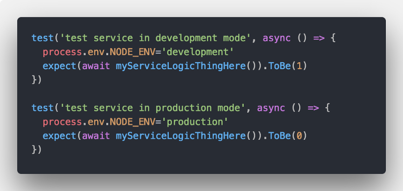Let’s see a crude example — Say your app behaves differently depending on an environment variable like NODE_ENV (not a far fetched example) and you want to test it in different conditions: